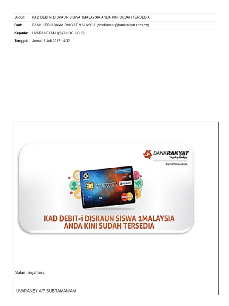Kad explorer platinum bank rakyat. Sebaliknya pemberian baucer tersebut melalui kad debit diskaun siswa satu malaysia (kads1m debit). Kedai atau perniagaan yang menjadi rakan dagang kads1m bersetuju untuk menawarkan diskaun kepada pemegang kad kads1m ke atas produk atau perkhidmatan terpilih. Saya daripada pusat panggilan malaysia, ingin membuat pengesahan mengenai kad maybank encik. Kads1m merupakan kad debit yang dikhususkan untuk mahasiswa agar dapat memperoleh diskaun pembelian sama ada pekhidmatan atau barangan daripada rakan dagang terpilih yang ditetapkan oleh kerajaan. Kad pengenalan malaysia), is the compulsory identity card for malaysian citizens aged 12 and above. Kad diskaun siswa 1malaysia (kds1m) yang berobjektif membantu pelajar institusi pengajian tinggi (ipt) awam dan swasta di negara ini mengurangkan kos sara hidup, dilancarkan oleh timbalan perdana menteri dan menteri pelajaran tan sri muhyiddin yassin, isnin. Bppt akan disalurkan kepada yang pelajar yang layak (iaitu memenuhi syarat kelayakan permohonan) bermula 28 mac 2019 secara berperingkat. Koleksi soalan sains dual language programme (format baru). Bagi tahun 2019, jumlah bantuan yang diberikan adalah sebanyak rm 100. Make full use of free educational resources like university libraries. **what is kads1m (kad diskaun siswa 1malaysia)?** for the past few years, students in in 2017, the new kads1m is replacing the 1malaysia book voucher or bantuan buku 1malaysia this debit card can be used to purchase books, stationary, computer equipment and also to access. Seperti diketahui umum, kad diskaun siswa 1malaysia (kads1m) diwujudkan untuk membantu meringankan perbelanjaan siswa di institusi pengajian tinggi (ipt) awam dan swasta di seluruh negara.